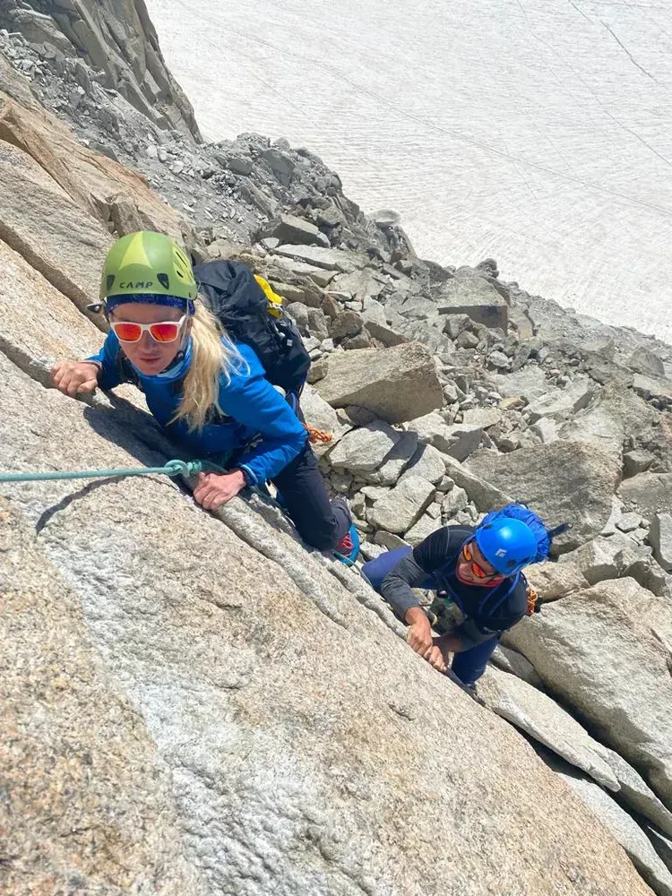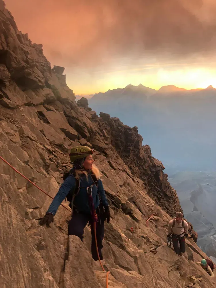 For me personally the biggest challenge was the strong wind we were caught in on the ridge close to the summit. This was the only moment I felt quite vulnerable, but I had a great trust in Polly. Slowing down was not an option, as we wanted to get out of the wind exposure as quickly as possible. In terms of physical fitness, once you relax into the climb and try to use the body efficiently without creating too much tension - it is a very nice sustainable effort, not easy, as it is a long day, but doable. You need to be prepared for 7-12 hours of climbing, depending how fast you are on the way down. Yeah, it was not the way up that was the hardest - it was coming back down. Also bearing in mind there is plenty of exposure - a good head for heights is very helpful ;).